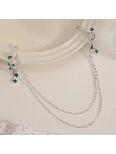 إكسسوارات ملابس داخلية جذابة قطعة قلب بنشارة الراين لخرز دون ثقب، سلسلة صدرية فضية جذابة للنساء مع ملزمة للثدي للمايوه
