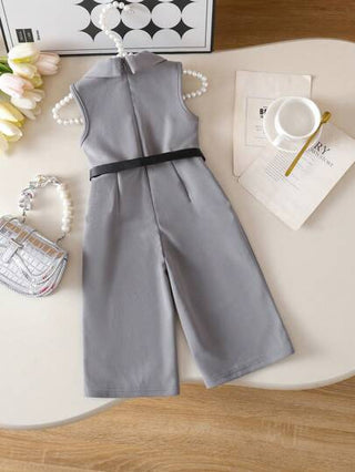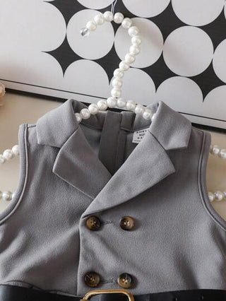 بدلة أنيقة رمادية بلا أكمام للأطفال البنات في الصيف مع طوق جمبسوت