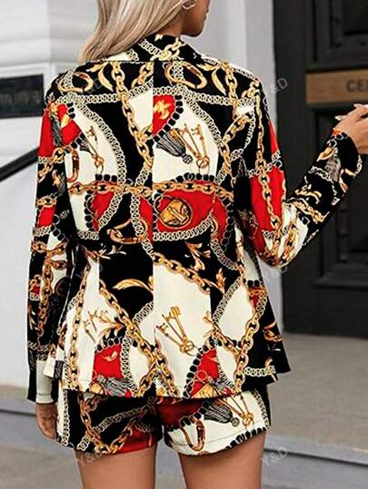 بدلة بلوفر بأكمام طويلة وقصة ضيقة بطباعة زهرية رفيعة كاجوال