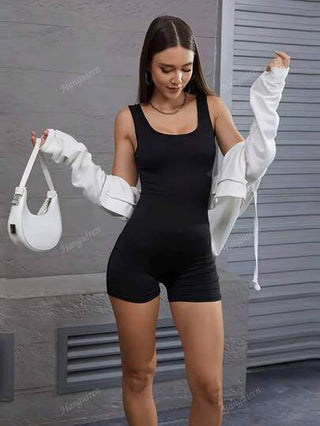 بدلة رياضية بالفتحة الخلفية للياقة البدنية،ذات رقبة مربعة بدون أكمام، موحدة اللون، قابلة للتنفس بتصميم ظهر متقاطع ورفع الخصر