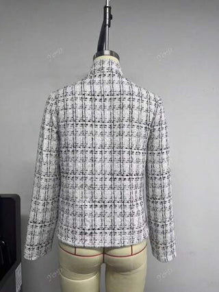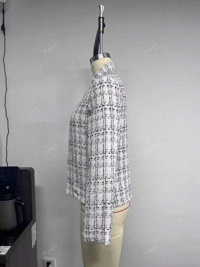 بدلة سيدات من التويد ، جاكيت كم طويل، طوق أطلسي، صالح للمناسبات والعمل المكتبي ، أناقة واستقرار'