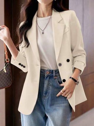 بلايزر طويل الأكمام بقصة واحدة الصدر مع أساور مزررة للمرأة