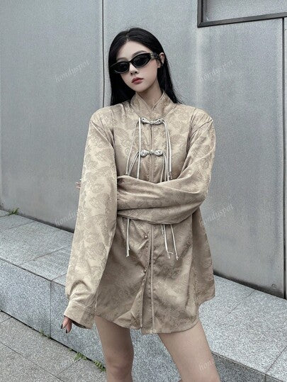 بلوزة أنيقة طويلة الأكمام بطراز صيني للنساء