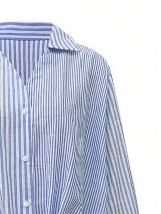 بلوزة حريمي كاجوال مخططة بأكمام طويلة تحت مرتفعة متدرجة الطول من القطن بتصميم ملفوف حافة، مناسبة للربيع والصيف