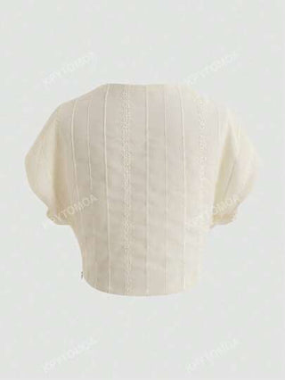 بلوزة قصيرة مطوي امامي اكمام جناح الخفاش