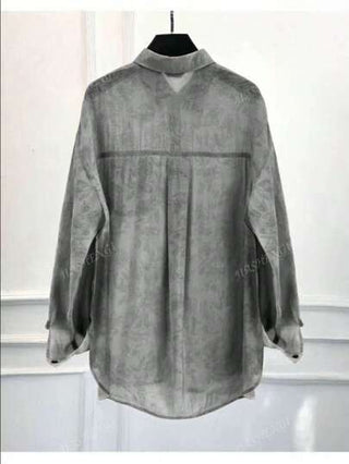 بلوزة نسائية بقصة فضفاضة وأكمام طويلة وطبعات على الياقة، وحيدة الأزرار الأمامية