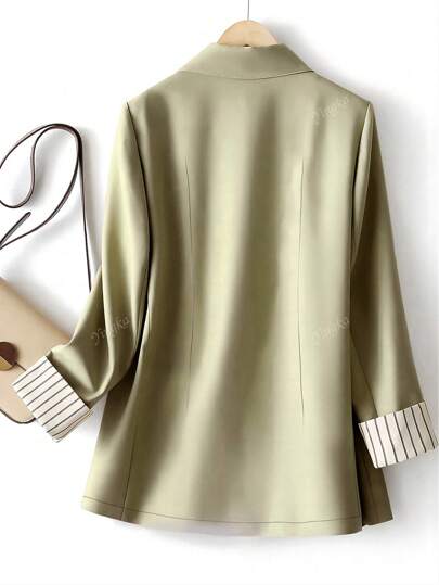 بلوفر نسائي مقلم بأكمام و قصة عادية بأزرار