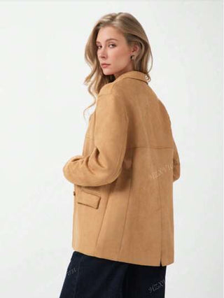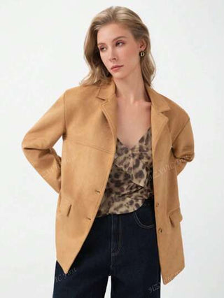 بليزر نسائي أحادي اللون بظهر طويل الأكمام ذو طوق مطفأ لارتداء المكتب