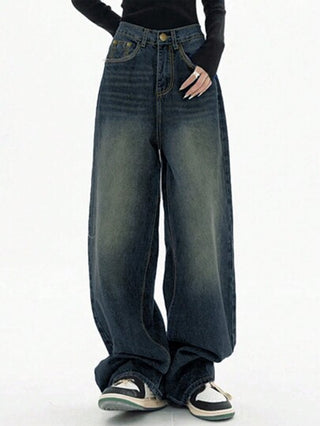 بنطلون جينز أنثوي بتصميم جيوب باللون الداكن
