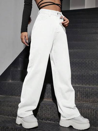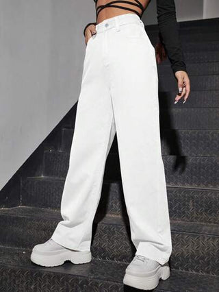 بنطلون جينز بويفريند خصر عالي جيب مائل