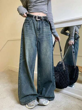 بنطلون جينز نسائي بقصة مستقيمة فضفاضة بطراز الماضي، بقصة ساق واسعة أمريكية مرتخية الحافة، مناسب لفصلي الخريف والشتاء