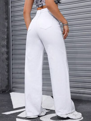 بنطلون جينز نسائي بلون صلب فضفاض وأنيق