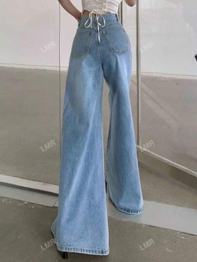 بنطلون جينز واسع للنساء غير رسمي مغسول فضفاض