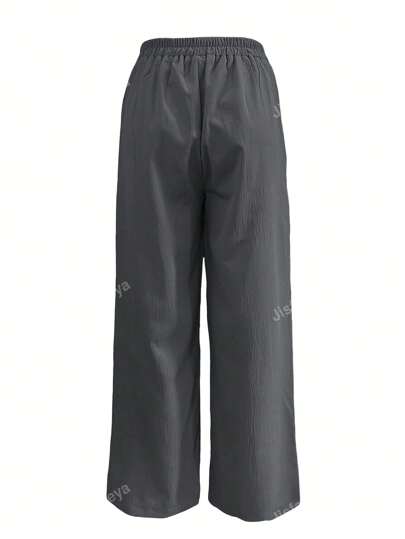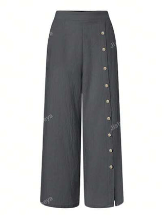 بنطلون سيدات بمقطع جانبي وجيوب ذو ساق واسعة بلون أحادي مع أزرار