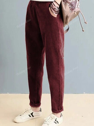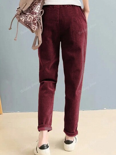 بنطلون كاجوال بسيط ذو جيب ولون واحد للنساء