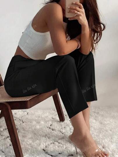بنطلون نسائي رفيع ذو جيوب جانبية مطوية أنيق للتنقلات