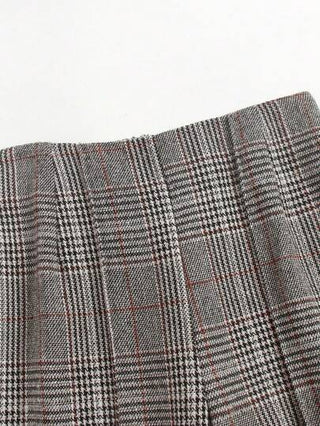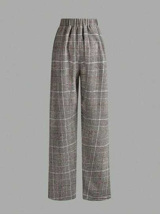 بنطلون نسائي عريض الساق ذو خصر عالي بنمط هوندستوث - بخصر مطاطي، بطانة حرارية وبنمط كشمير قديم