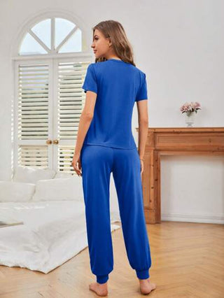 بيجامة قطعتين للنساء بتيشيرت نصف كم ورقبة دائرية مطبوع عليها شعار Plus بنطلون