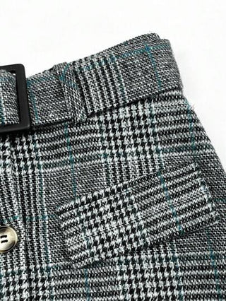 تنورة أنيقة قصيرة بقصة خط A، علامة زائفة وأزرار أمامية، طراز منقوش بخطوط متقاطعة، مناسبة للاستخدام اليومي الكاجوال للنساء