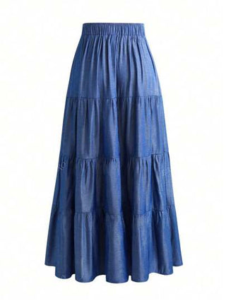 تنورة بخصر عالي وفضفاض لخط A من الأزرق الفرنسي الفاقع مصنوعة من لينين ليوسيل متعددة الاستخدامات للسيدات