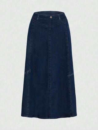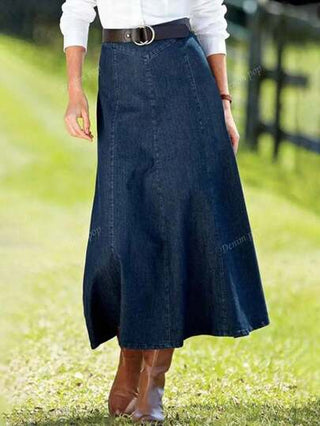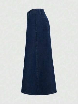 تنورة جينز مقاسات كبيرة للنساء, لون أزرق غامق مغسول
