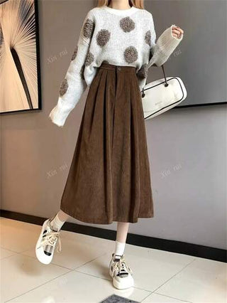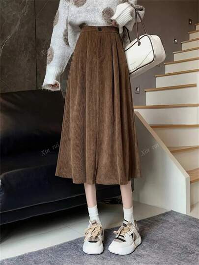 تنورة سيدات بلون سادة مبطن، ربيعية/خريفية