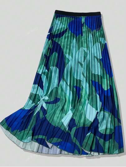 تنورة نسائية كشكشة مُطبعة بنقشة الأزهار على شكل "حرف A"، هادئة للربيع والصيف