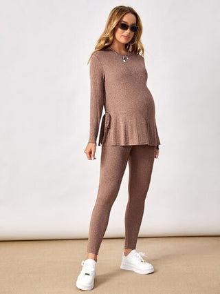 تيشرت أكمام طويلة وسروال ضبط الخصر من ملابس الحمل لون صلب
