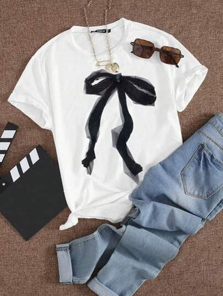 تي شيرت بطباعة عتيقة، رقبة دائرية قياس كبير، ملابس علوية بأسلوب فضفاض