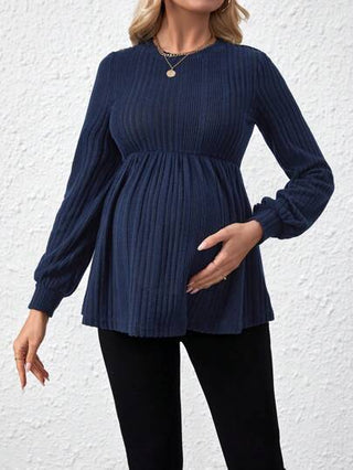 تي شيرت تي شيرت طويل الأكمام مناسب للحوامل ضيق التصميم بياقة مستديرة