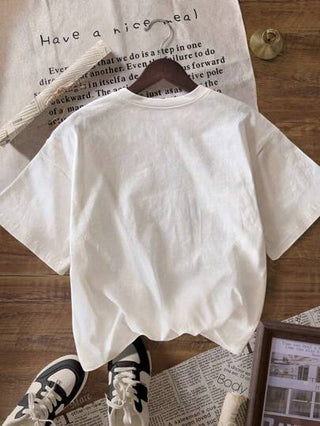 تي شيرت قصير الأكمام برقبة دائرية بطبعة نادي القهوة ، ملابس صيفية عادية للمرأة