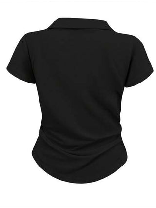 تي شيرت كاجوال للنساء بلون صلب مَطوي، صيفي