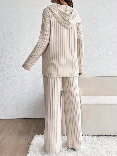 ثوب حلل 2 قطعة/طقم، رسمي للحمل، من لون أحادي منسوج بأكمام سقطت في الكتف، رخو وبحزام مطاطي، وبنطال ساق واسعة، طقم ملابس للربيع/الخريف
