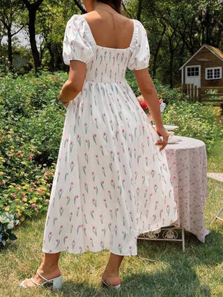ثوب حمل أنيق طويل مطبوع بنقشة الزنبق للصيف