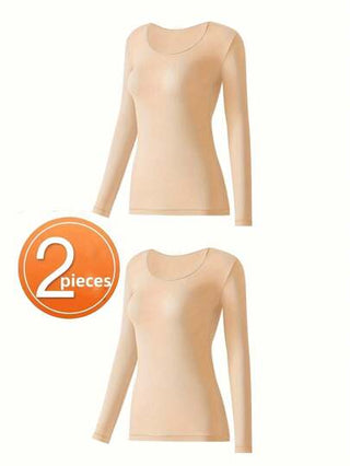 ثياب داخلية نسائية حرارية سلسة فائقة الرقة 2 قطعة - ملابس علوية بأكمام طويلة ورقبة دائرية ناعم ومريح ، مناسبة للملابس الداخلية والنوم ، مصنوعة من مواد عالية الجودة