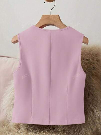 جاكيت أنيقة للسيدات بشكل بلوزة ذات فتحة رقبة على شكل حرف V بدون أكمام، جاكيت سوفتشلة عصرية بأزرار أمامية للإرتداء في كل الفصول