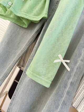 جاكيت خفيفة للنساء ذات أكمام طويلة بزخرفة وشريطة على الأمام
