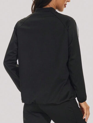 جاكيت نسائي فضي مطلي بطبقة عاكسة مع سحّاب لياقة بدنية واقي من التعرق مع قطعة سلامة لتعرية اكثر