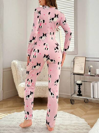 جمبسوت نوم سروال وأكمام طويلة بطبعات كلاب صغيرة كيوت