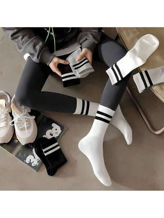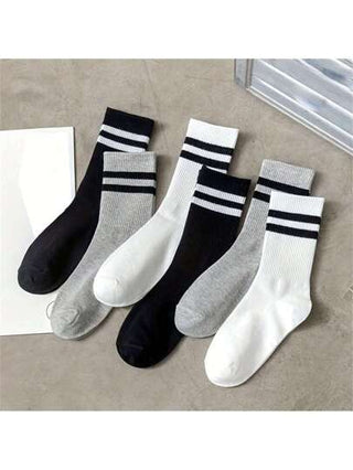 جوارب رياضية خارجية للنساء 3/6 أزواج، جوارب أنبوبة متوسطة للتمرين ذات نمط مخطط عادي، قابلة للتنفس ومضادة للرطوبة