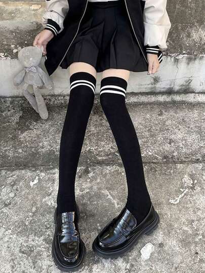 جوارب فوق الركبة ذات خطوط عريضة ثابتة، سميكة وجذابة للارتداء اليومي زوج واحد