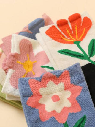 جوارب 3d Tulip Mid-calf ( متوسطة الساق) بخمسة أزواج مع دانتيل زهري، بطراز ياباني