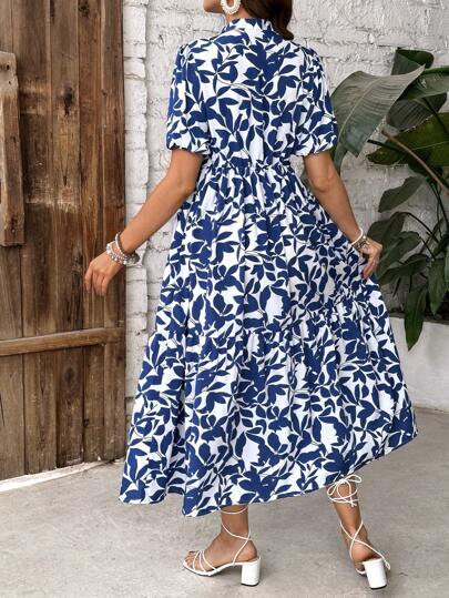 حفلة الوصول الجديدة فستان الحمل ذو الرقبة على شكل V كم قصير مطبوع بطباعة صيفية