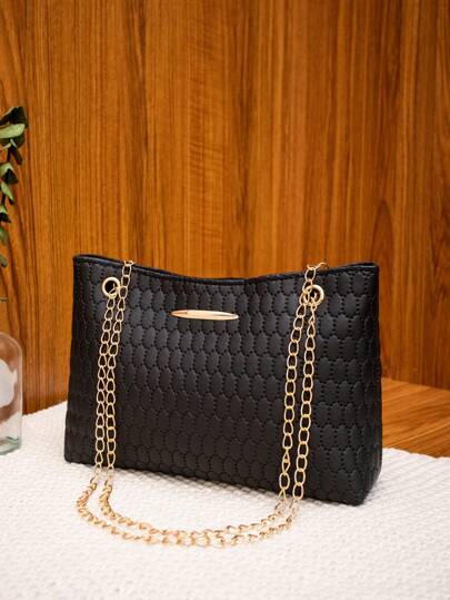 حقيبة كتف أنيقة للنساء مطرزة بشكل بارز مع حزام سلسلة للحمل على الكتف أو عبر الجسم