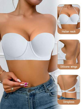 حمالة صدر بطبقة أنيقة قطعة واحدة للنساء بحافة سلكية وتأثير رفع للصدر بقصة نصف كأس باللون الأبيض