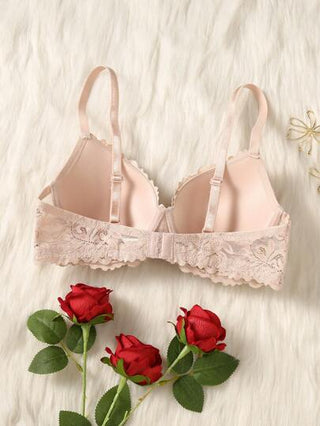 حمالة صدر مطرزة بالورود واللؤلؤ بحافة سلكية