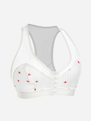 حمالة صدر نسائية مريحة وأنيقة مع إغلاق أمامي ب- 5 أزرار وبطبعة قلوب
