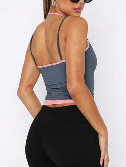 خزان ملابس علوية كاجوال بدون أكمام لون أحادي مع قطع متباينة للنساء