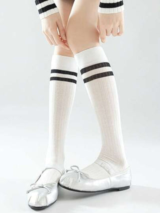 زوج جوارب نسائية ذات خطوط متداخلة للركبة سميكة، موضة شائعة للخريف/الشتاء