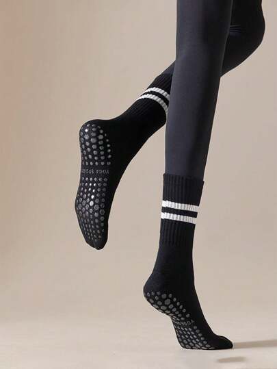 زوج من الجوارب غير الانزلاقية للنساء، جوارب احترافية غير انزلاقية مناسبة للوغا والبيلاتس واللياقة البدنية وجوارب الأرض، مناسبة للاستخدام اليومي، جوارب أنبوب متوسطة الساق للصيف